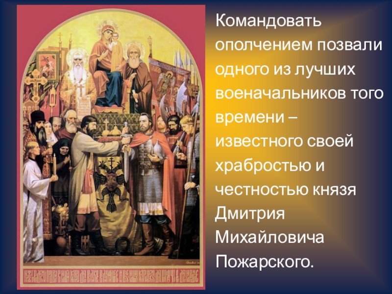 Слайд 6Командовать ополчением позвали одного из лучших военачальников того времени – известного