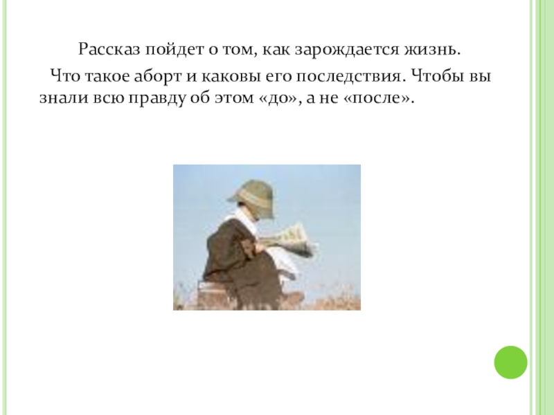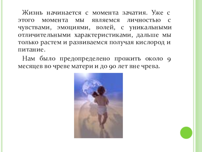 Слайд 3 Жизнь начинается с момента зачатия. Уже с этого момента мы являемся