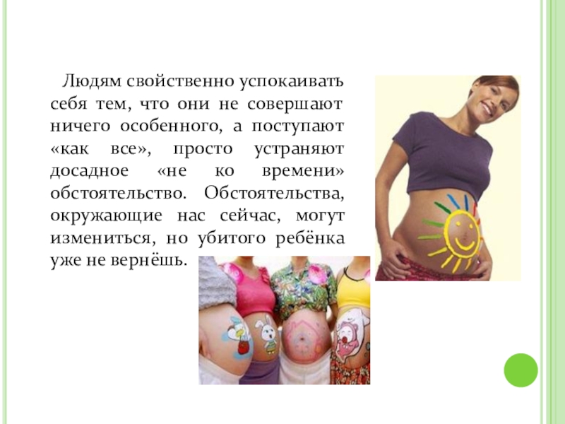 а поступают «как все», просто устраняют досадное «не ко времени» обстоятельство. Обстоятельства, окружающие нас сейчас, могут измениться, но убитого ребёнка уже не вернёшь.