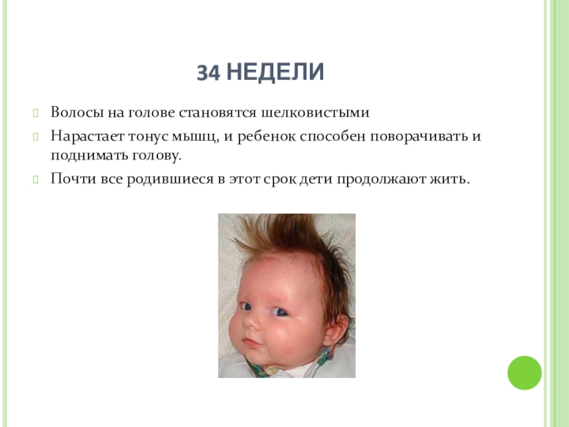 Развиваются пальчики, появляется некоторое количество волос на головке и