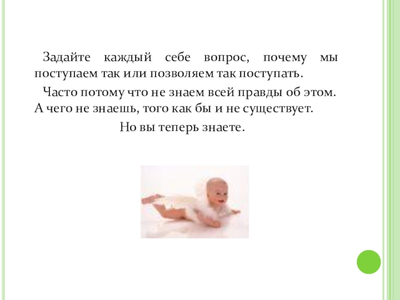 Слайд 34 Задайте каждый себе вопрос, почему мы поступаем так или позволяем так