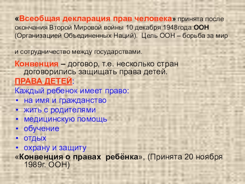 «Конвенция о правах ребёнка», (Принята 20 ноября 1989г. ООН)