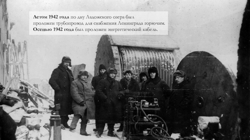 Слайд 28Летом 1942 года по дну Ладожского озера был проложен трубопровод для снабжения