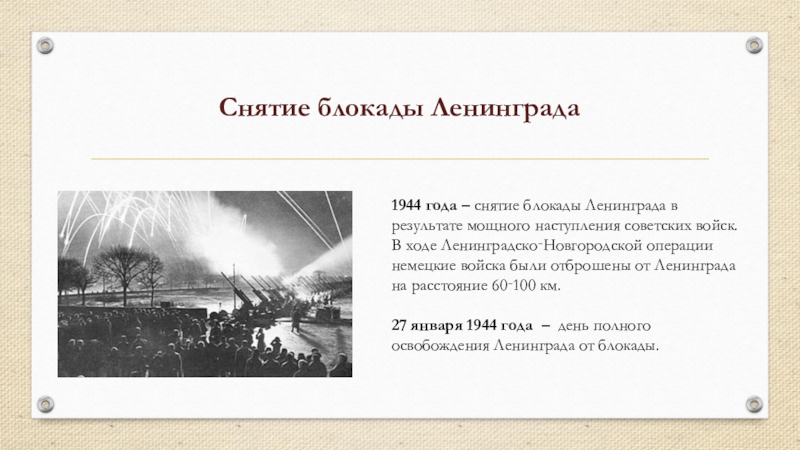 27 января 1944 года – день полного освобождения Ленинграда от блокады.