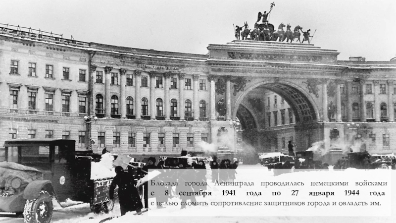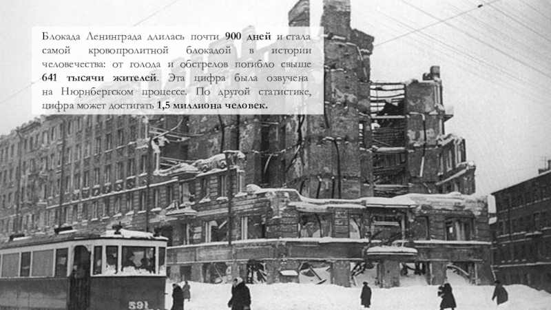 Слайд 33Блокада Ленинграда длилась почти 900 дней и стала самой кровопролитной блокадой в