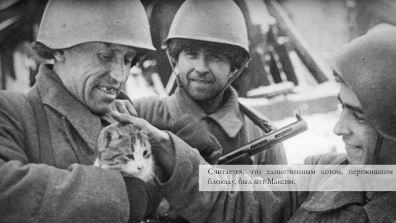 Слайд 18Считается, что единственным котом, пережившим блокаду, был кот Максим.