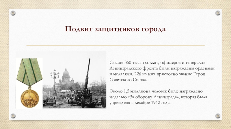 Около 1,5 миллиона человек было награждено медалью «За оборону Ленинграда», которая была учреждена в декабре 1942 года.