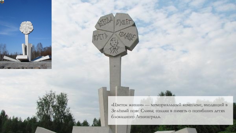 Слайд 35«Цветок жизни» — мемориальный комплекс, входящий в Зелёный пояс Славы; создан