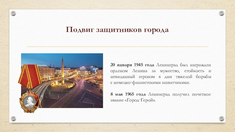 8 мая 1965 года Ленинград получил почетное звание «Город‑Герой».