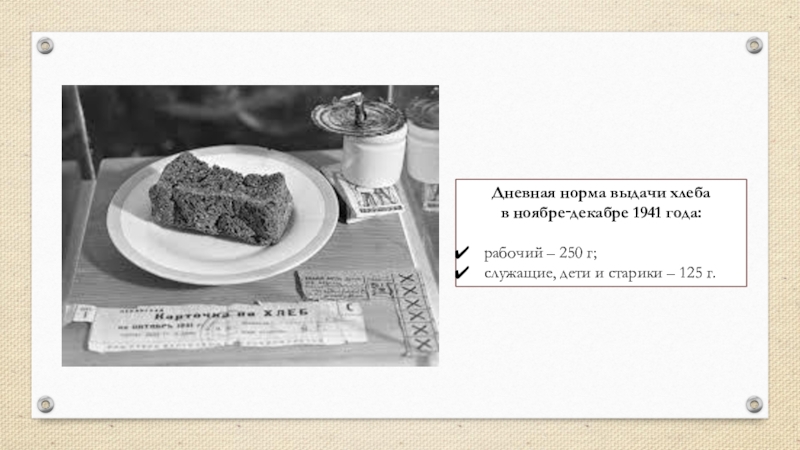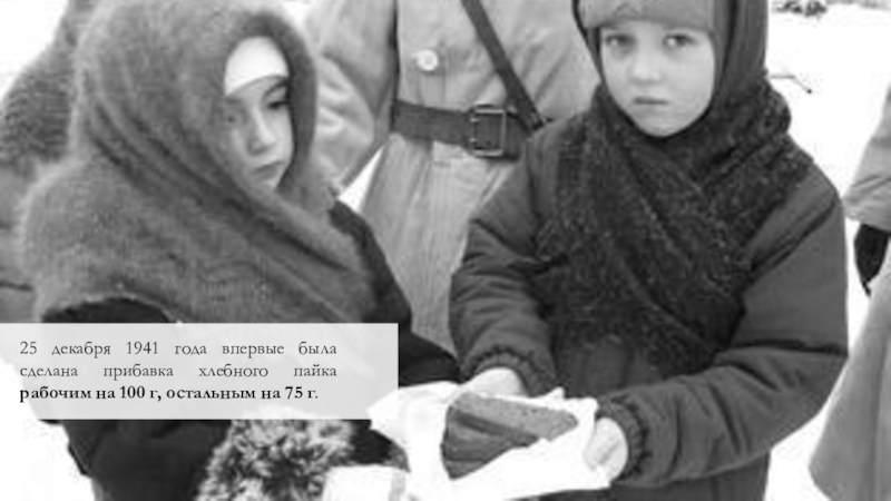 Слайд 2125 декабря 1941 года впервые была сделана прибавка хлебного пайка