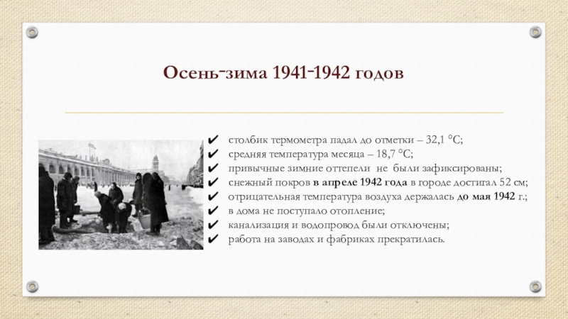 отрицательная температура воздуха держалась до мая 1942 г.;