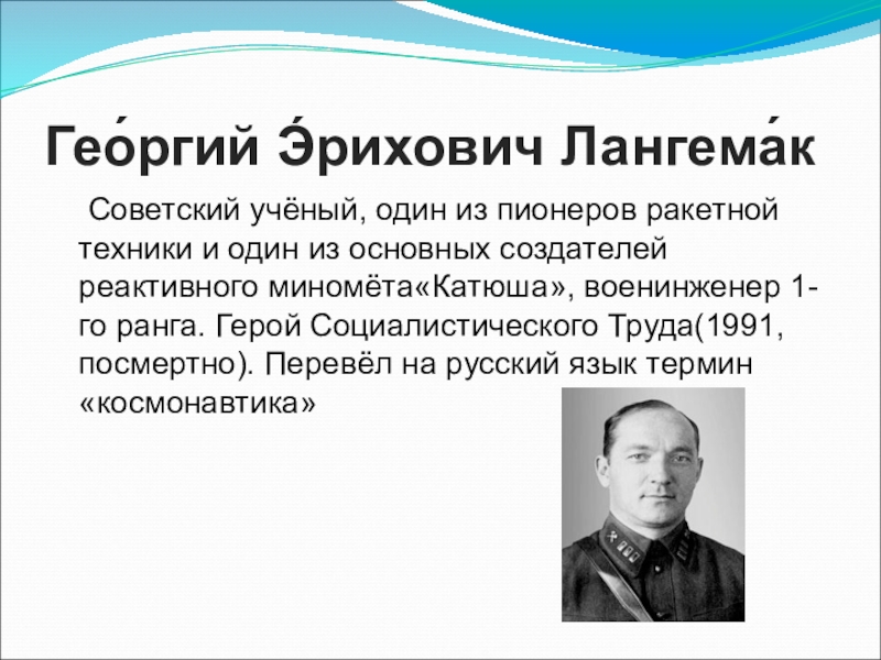 Слайд 6Гео́ргий Э́рихович Лангема́к