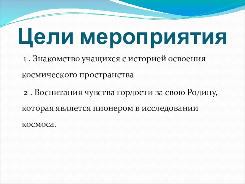 2 . Воспитания чувства гордости за свою Родину, которая является пионером в исследовании космоса.