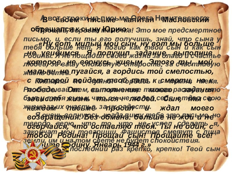 В своем письме капитан Масловский обращался к сыну Юрию: