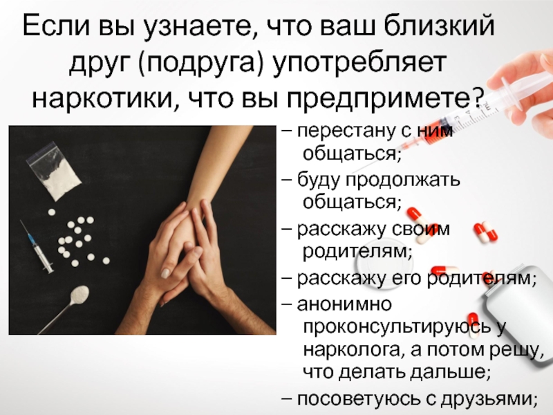 – анонимно проконсультируюсь у нарколога, а потом решу, что делать дальше;