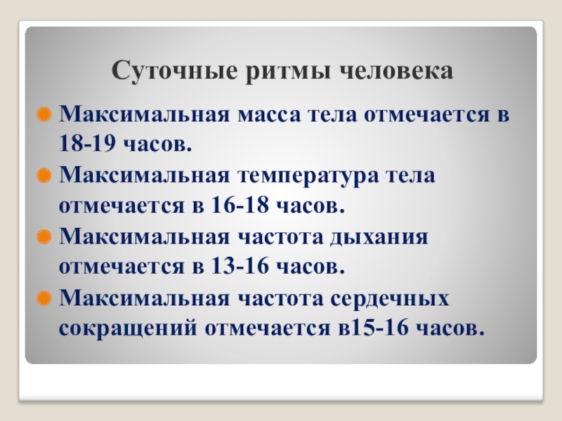 Хронобиология – наука, изучающая вопросы, связанные с регуляцией ритмов человека внешними условиями.