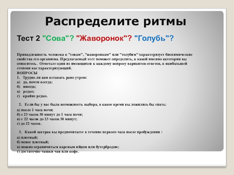 Тест 2 "Сова"? "Жаворонок"? "Голубь"?