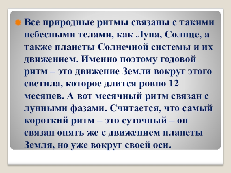 Все природные ритмы связаны с такими небесными телами, как Луна, Солнце,