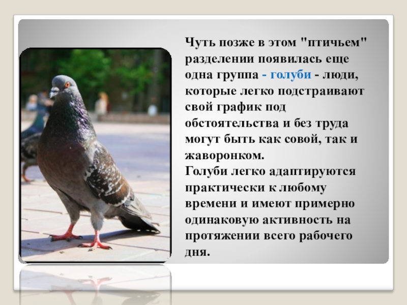 «Голуби» – это люди, которые не имеют четко выраженных пиков работоспособности в утреннее и вечернее время