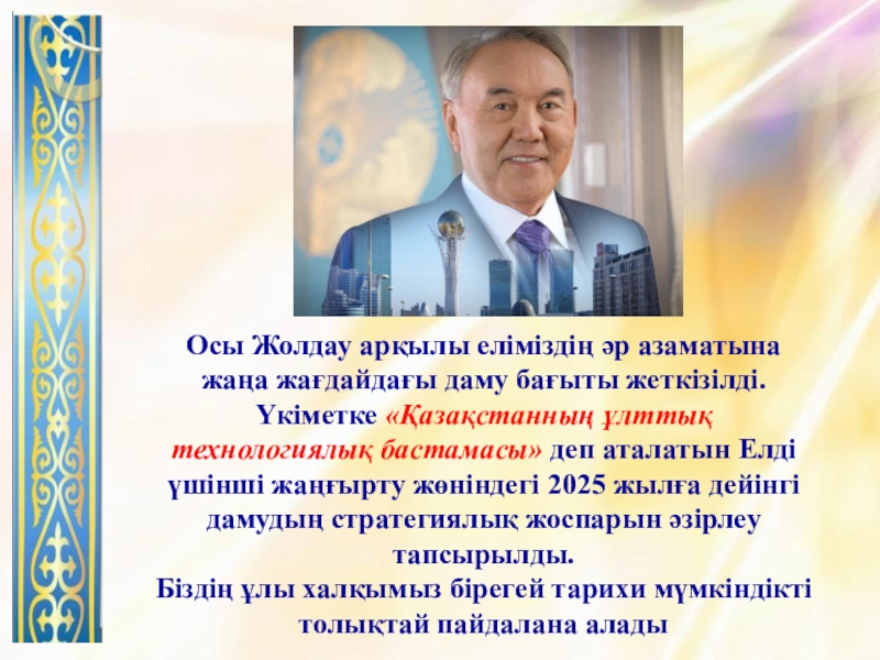 Слайд 1Мемлекет басшысы Н.Назарбаевтың Қазақстан халқына жолдауы