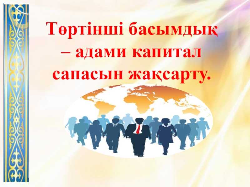 Слайд 18Төртінші басымдық – адами капитал сапасын жақсарту.