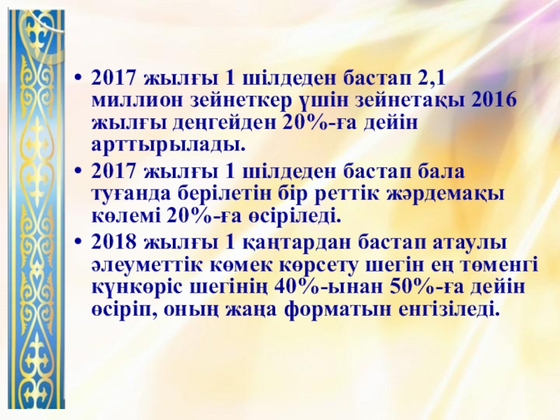 Слайд 252017 жылғы 1 шілдеден бастап 2,1 миллион зейнеткер үшін зейнетақы 2016