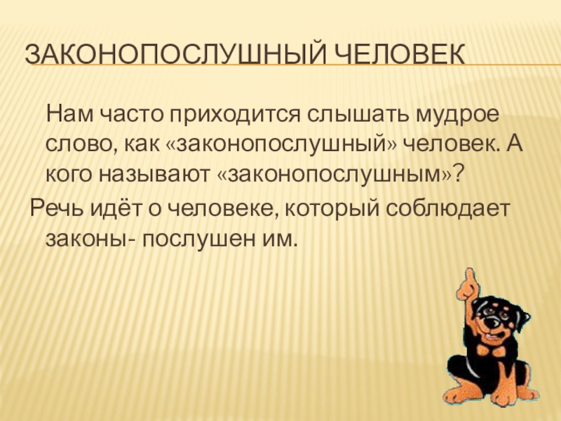 Законопослушный человек  Нам часто приходится слышать мудрое слово, как «законопослушный» человек. А кого называют «законопослушным»? Речь