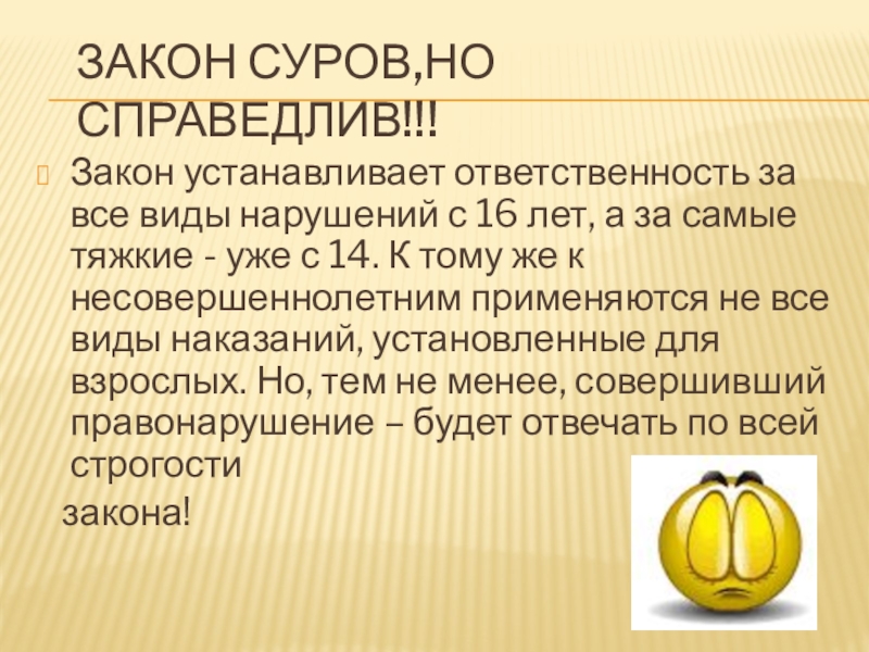 Слайд 12ЗАКОН СУРОВ,НО СПРАВЕДЛИВ!!!