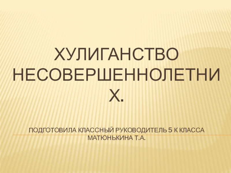 Слайд 1 ХУЛИГАНСТВО НЕСОВЕРШЕННОЛЕТНИХ. Подготовила классный руководитель 5 к класса Матюнькина Т.А.