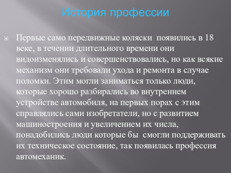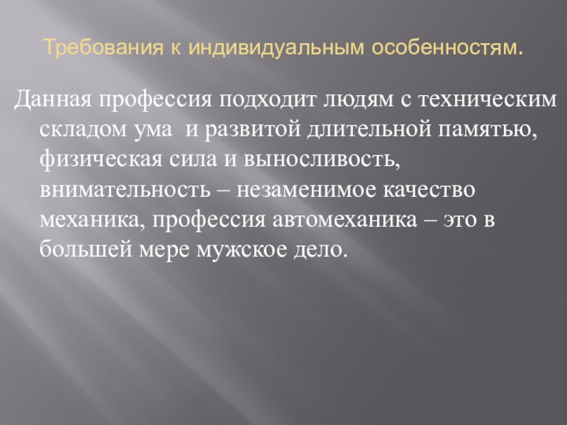 Особенности профессии