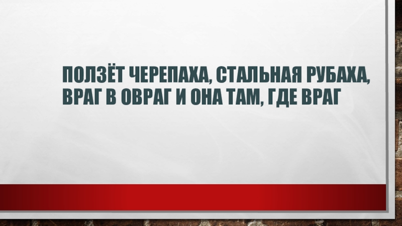 Слайд 13Ползёт черепаха, стальная рубаха, Враг в овраг И она там, где