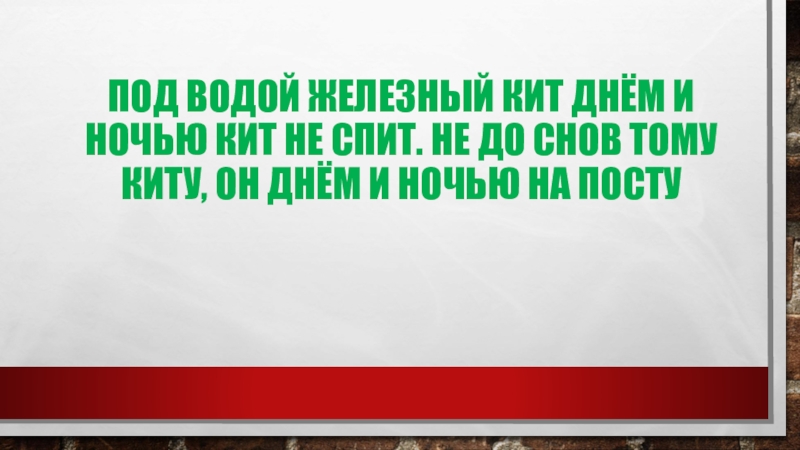 Слайд 14Под водой железный кит Днём и ночью кит не спит. Не