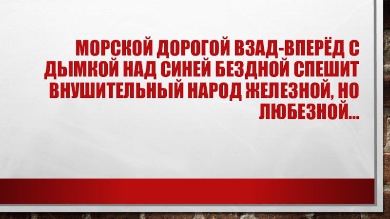 Морской дорогой взад-вперёд С дымкой над синей бездной Спешит внушительный народ Железной, но любезной…