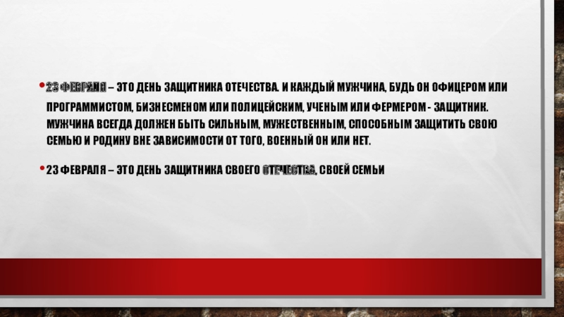 Слайд 623 февраля – это День Защитника Отечества. И каждый мужчина, будь