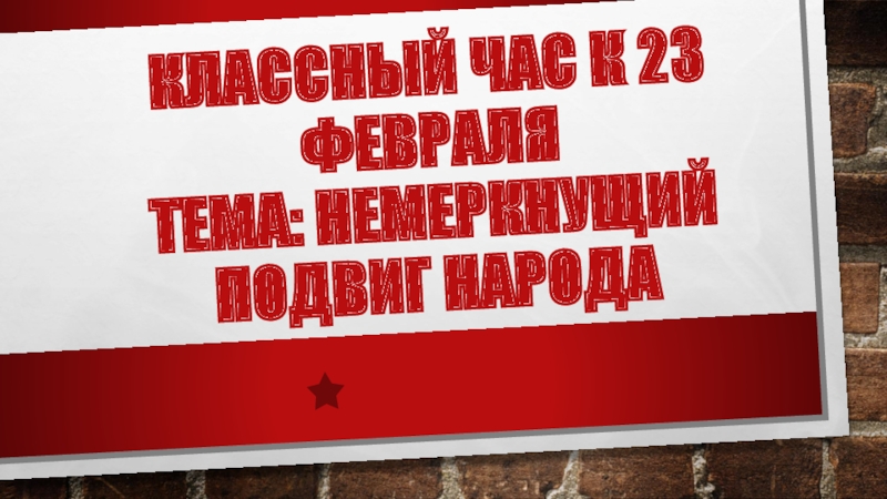 Слайд 1Классный час к 23 февраля Тема: Немеркнущий подвиг народа