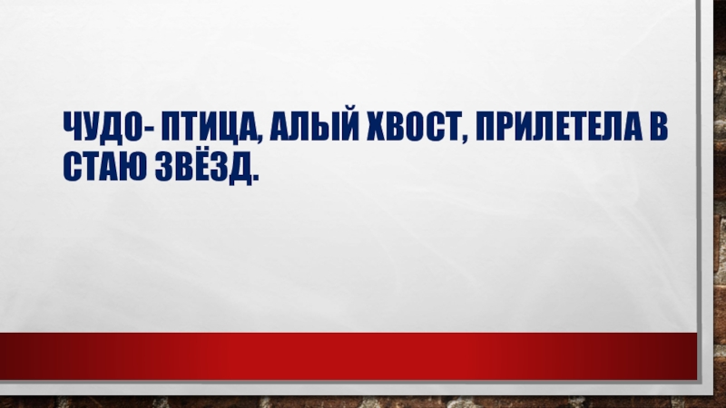 Слайд 8Чудо- птица, алый хвост, Прилетела в стаю звёзд.
