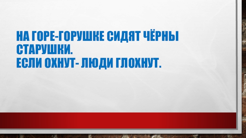 Слайд 10На горе-горушке сидят Чёрны старушки. Если охнут- Люди глохнут.