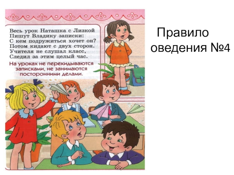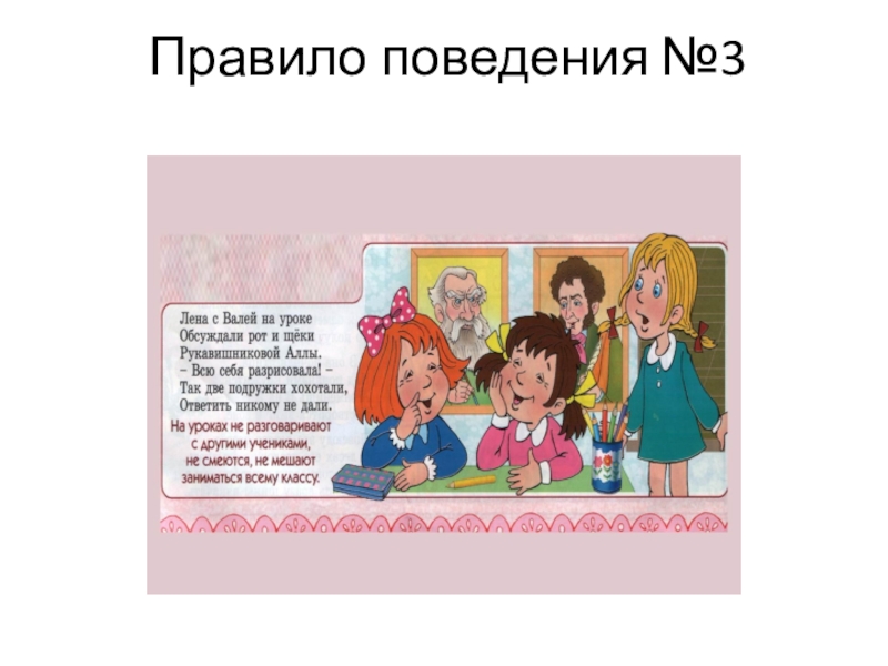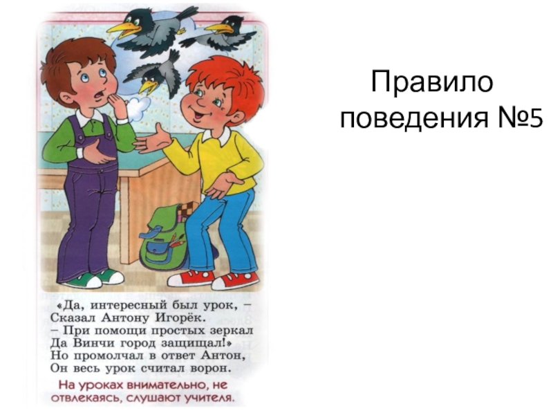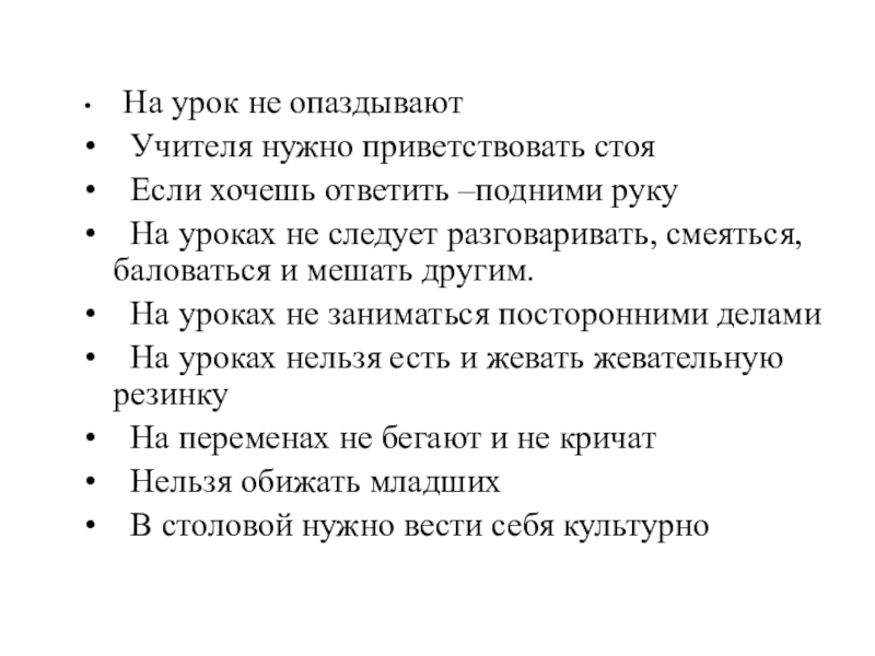 На уроках не следует разговаривать, смеяться, баловаться и мешать другим.