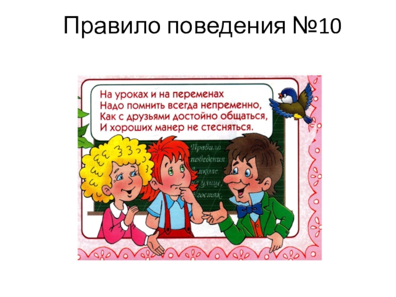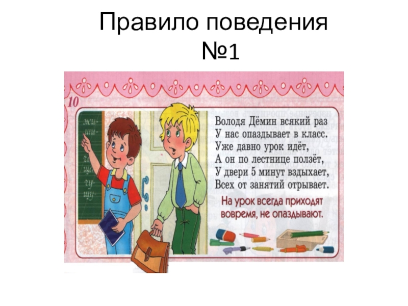 Слайд 1ПРАВИЛА ПОВЕДЕНИЯ В ШКОЛЕ ДЛЯ
