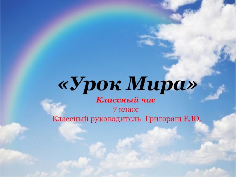 Слайд 1 «Урок Мира» Классный час  7 класс   Классный руководитель Григоращ Е.Ю.