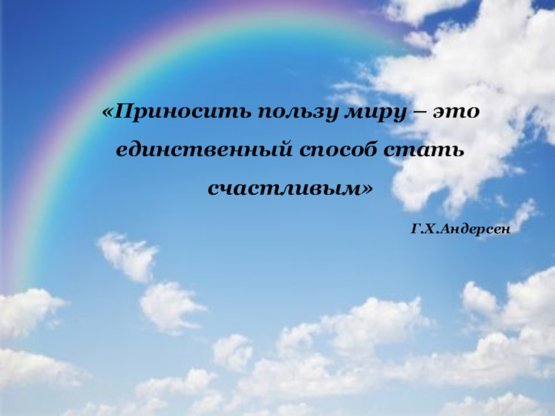 Слайд 15«Приносить пользу миру – это единственный способ стать счастливым»