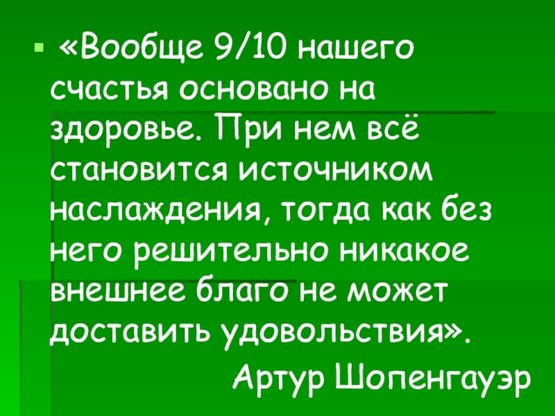 Слайд 3 «Вообще 9/10 нашего счастья основано на здоровье. При нем всё