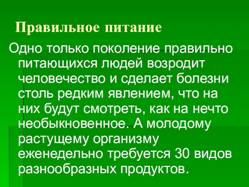 Одно только поколение правильно питающихся людей возродит человечество и сделает