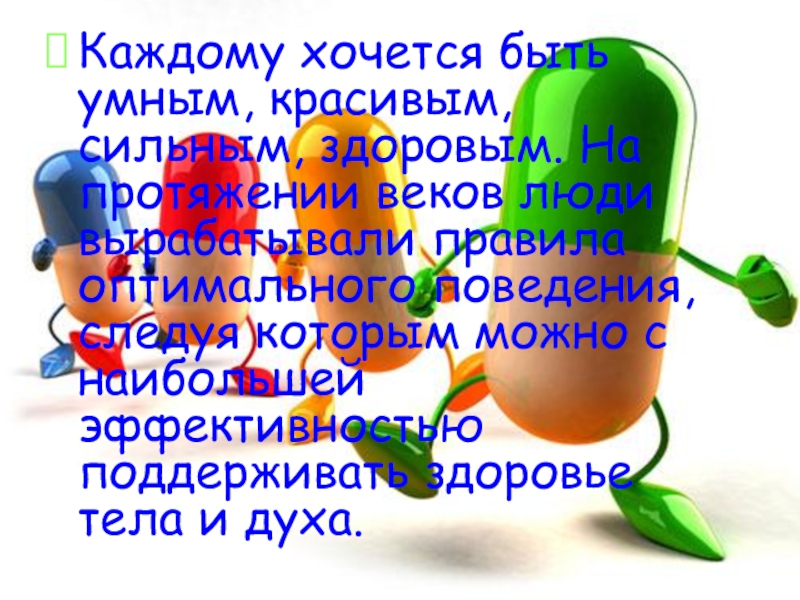 Слайд 2Каждому хочется быть умным, красивым, сильным, здоровым. На протяжении веков люди