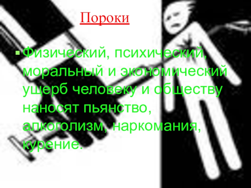 Физический, психический, моральный и экономический ущерб человеку и обществу наносят пьянство,
