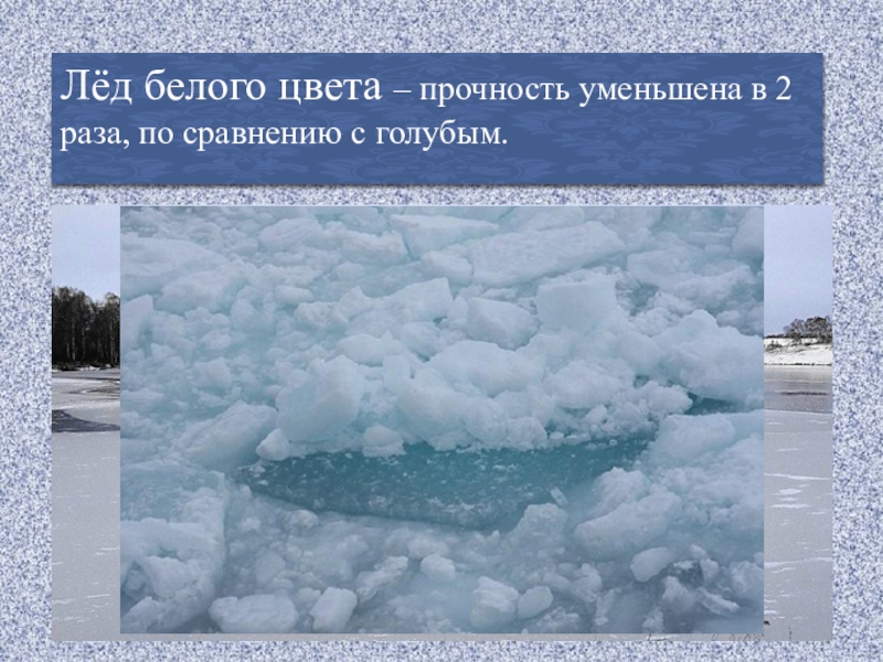 Слайд 7Лёд белого цвета – прочность уменьшена в 2 раза, по сравнению
