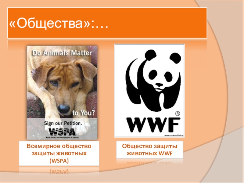 «Общества»:… Всемирное общество защиты животных (WSPA)Общество защиты животных WWF