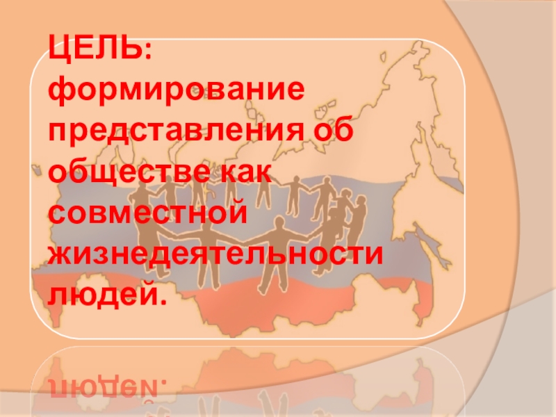 Слайд 2ЦЕЛЬ: формирование представления об обществе как совместной жизнедеятельности людей.