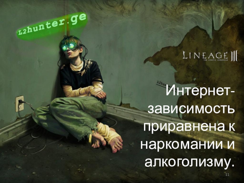 Слайд 11Интернет-зависимость приравнена к наркомании и алкоголизму.