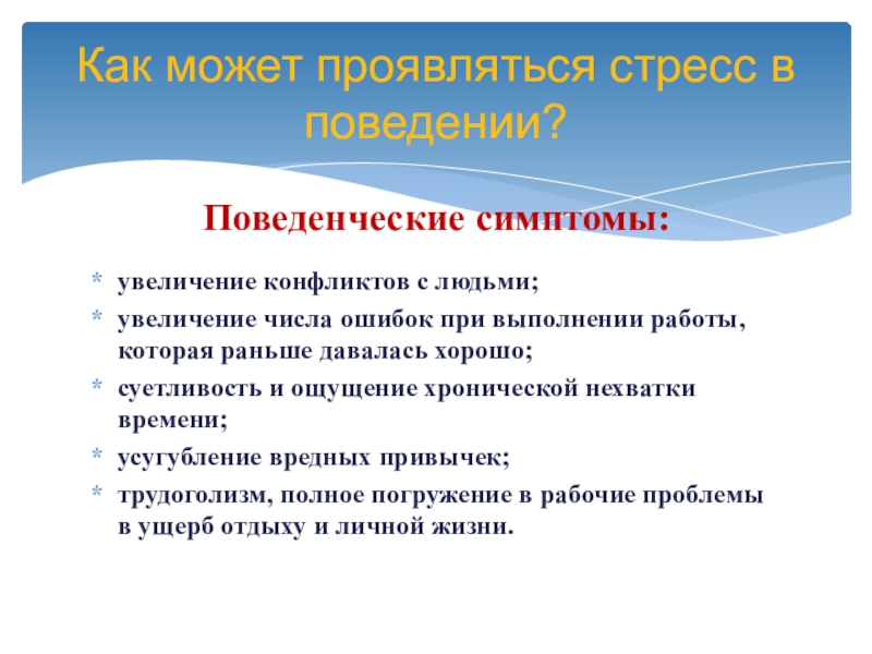 Как может проявляться стресс в поведении?